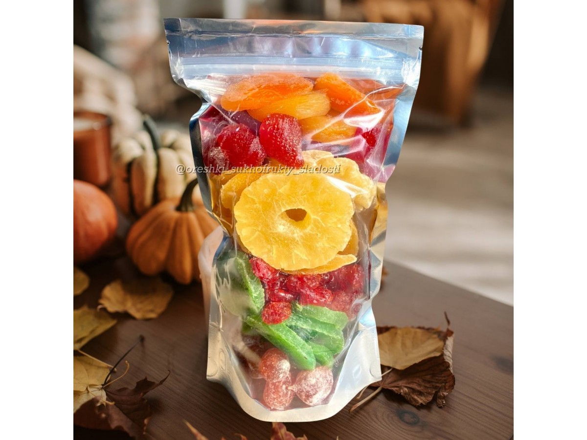 - Інжир та ананас в сушеному вигляді – більш делікатні учасники нашої комори.