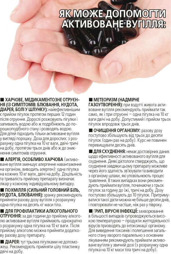 Одна з основних сфер, де використовується активоване вугілля — це медицина. Здавна відомо, що активоване вугілля допомагає при отруєннях. Його застосовують для адсорбції токсинів, що потрапили всередину організму.