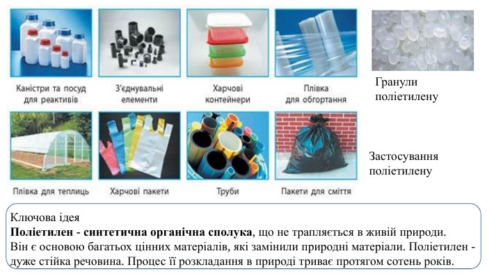 Поліетилен — це пластик, утворений в результаті полімеризації етилену. Використовується для виготовлення різних продуктів, від упаковок до промислових деталей. Вивчимо разом, де ж саме він ховається!