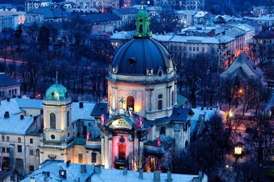 Приїхали у Львів? Не проходьте повз! Собор розташований у самому центрі міста. Тут, між іншими будівлями, він виглядає велично. Чесно, варто прийти двічі: вдень і ввечері, коли підсвічення робить його ще більш фантастичним.