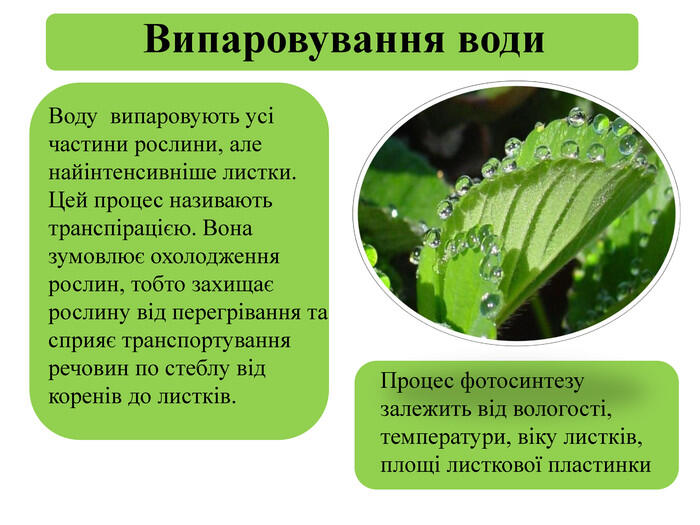 Як процес випаровування впливає на рослини?