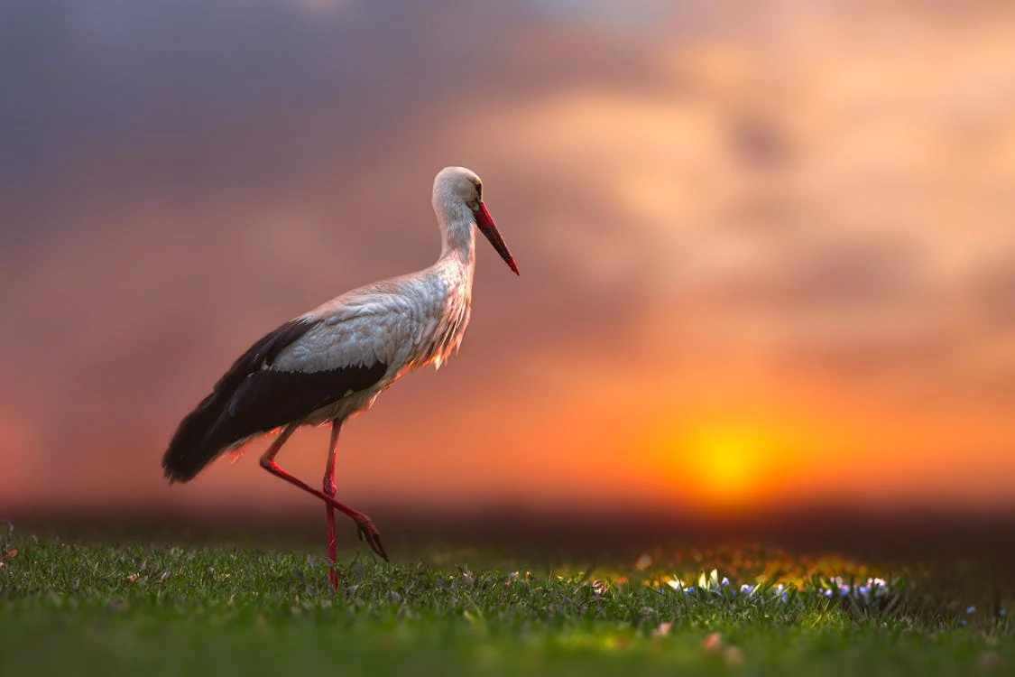 - Лелека: Граціозний політ, яскраві крила.