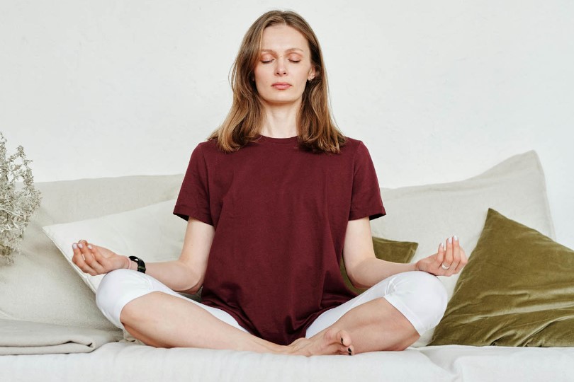 Сядьте. Закрийте очі чи зосередьтеся на певній точці. Дихайте глибоко і повільно. Усвідомте, де ви зараз. Вловлюйте звуки, запахи, відчуття. Не зациклюйтеся на думках, що приходять — спостерігайте їх.