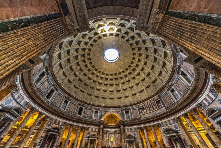Давні римляни були винахідниками. В архітектурі — точно. Пантеон у Римі було зведено в середині II століття н.е. І це було щось грандіозне. Храм, присвячений усім римським богам. Що було важливо на той час? Об’єднати різноплемені культури імперії у вшануванні богів.