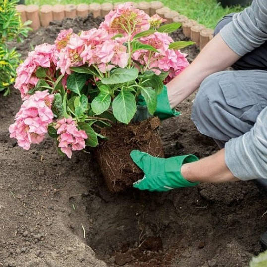 - Підготовка землі: Перед тим як посадити гортензію, забезпечте ґрунт відповідними умовами — він має бути вологим, дренованим і багатим на органіку.