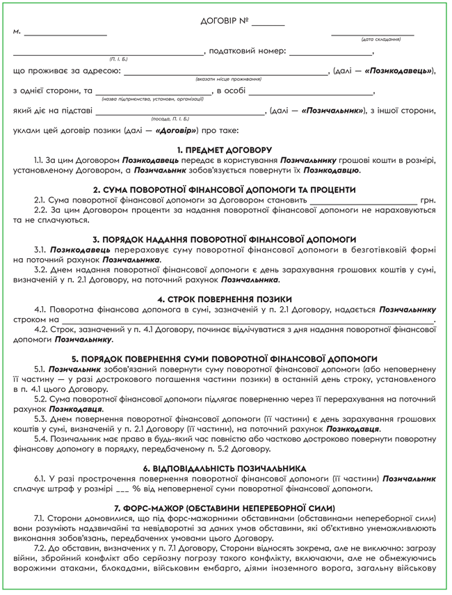 Поворотна фінансова допомога від засновника: зразок договору