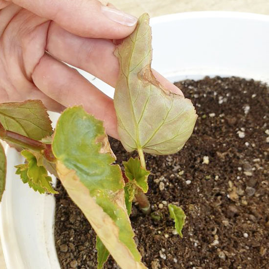 - Надлишок світла: Бегонії люблять світло, але не пряме сонце. Прямі промені можуть сприяти появі білих плям.