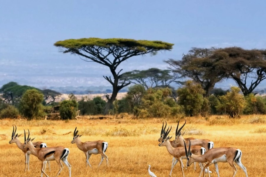 Савани — серед саван, де перелітні птахи потурбувати льотами. Леви господарями чупринают маківки, гну, зебри десь там, на горизонті, танцюють. Світ трояндстрави, тепло і здорове дерево, як живі дахи.