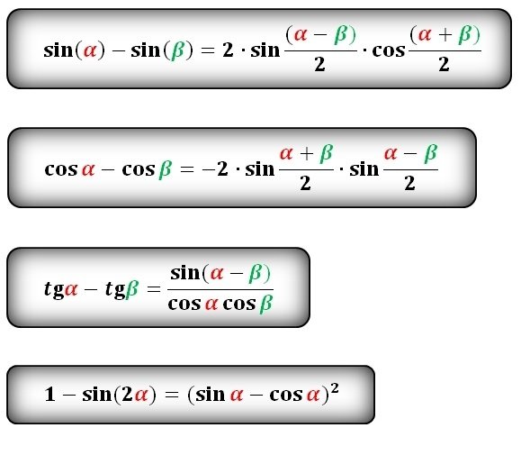 А тепер, час для найбільш заплутаного фінта: різниця косинусів. Виглядає дуже серйозно, коли записати формулу: