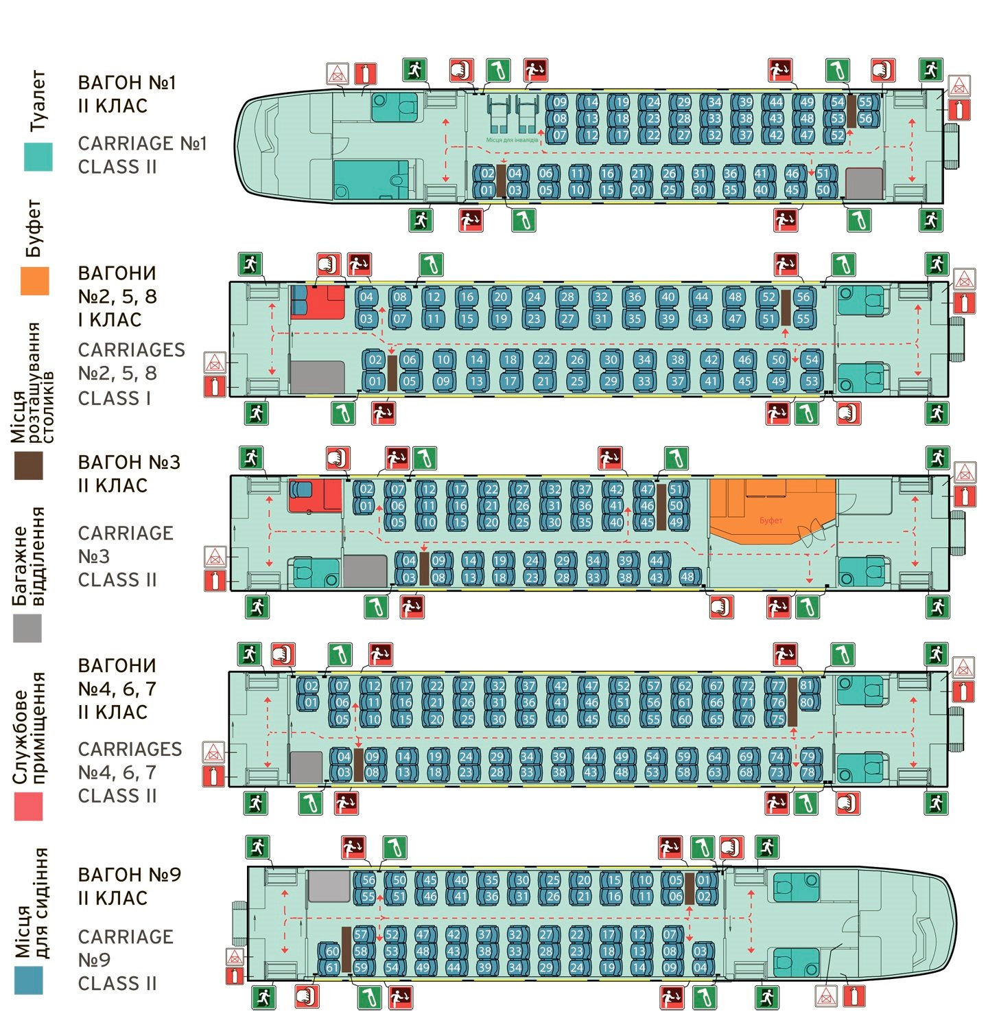 - Комфорт: Сидячі вагони, здебільшого без купе, з м’якими сидіннями