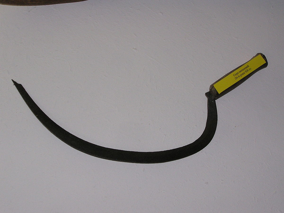 | Традиційний серп | Має просту форму з дерев’яною ручкою і сталевим лезом. |