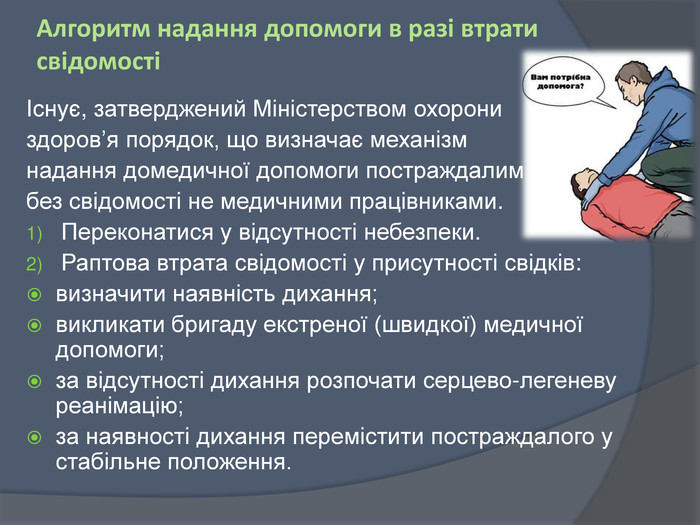 - Дії при втраті свідомості