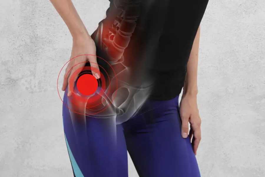 - Біль у стегні: спочатку легкий, далі — наростаючий. Особливо після фізичних навантажень чи навіть довгого сидіння.