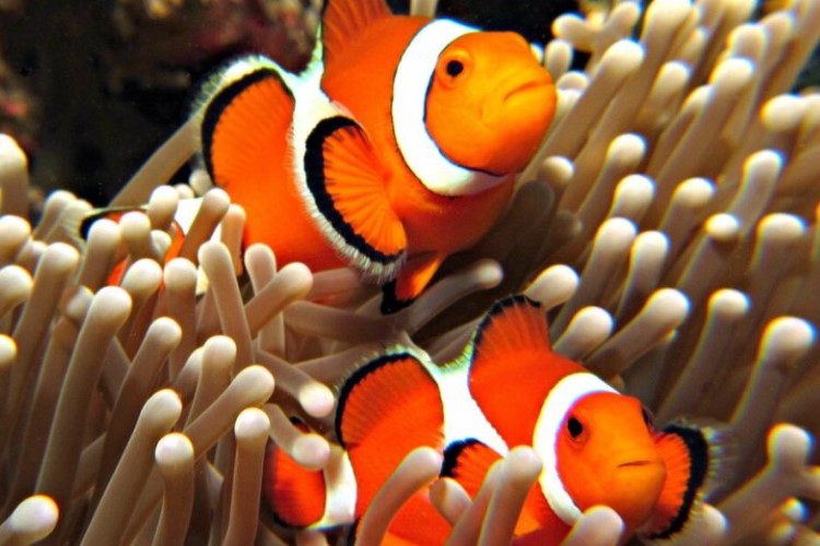 - Симбіоз риб-клоунів та анемонів: Риба-клоун знаходить притулок від хижаків у анемоні, а анемон ласує залишками їжі риби.