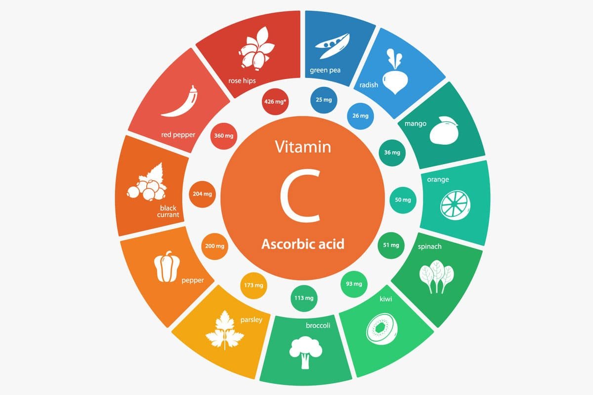 - Вітамін C: Повний збір антиоксидантів. Цитрусові.