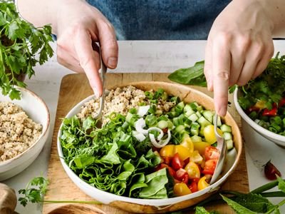 - Балансоване меню — домінування овочів і фруктів.