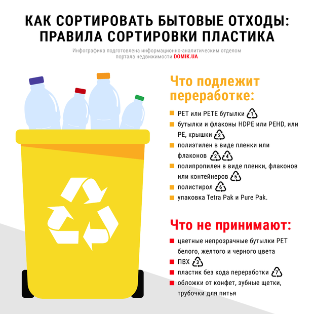 Загалом, не всі предмети, виготовлені з пластику, є придатними для вторинної переробки. Перш ніж викинути пластиковий виріб у контейнер, уважно ознайомтеся з інформацією на упаковці – зазвичай вона містить спеціальні символи чи інструкції з утилізації.