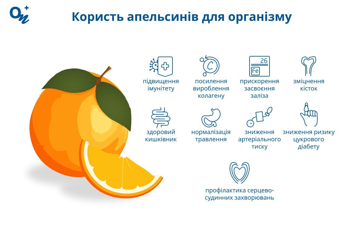 Апельсин — це така жива сила, правильніше сказати, скарбниця вітамінів. Він підживлює наш організм вітаміном C — це як фейрверк для імунітету. Більше того: у кожному плоді знайдеш щось на зразок таємного всеохопного зілля. Це і бета-каротин, і калій, і кальцій, і магній, і не тільки.