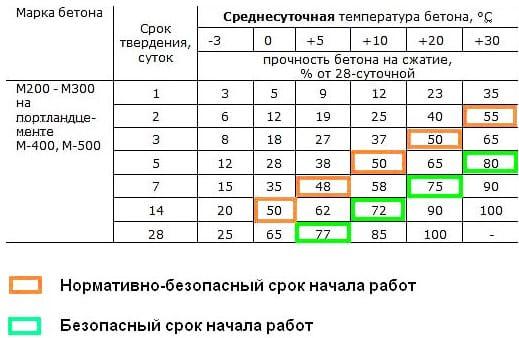 Таблиця орієнтовного часу висихання бетону: