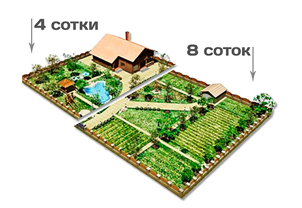 | Котедж або бунгало | 4-6 соток |