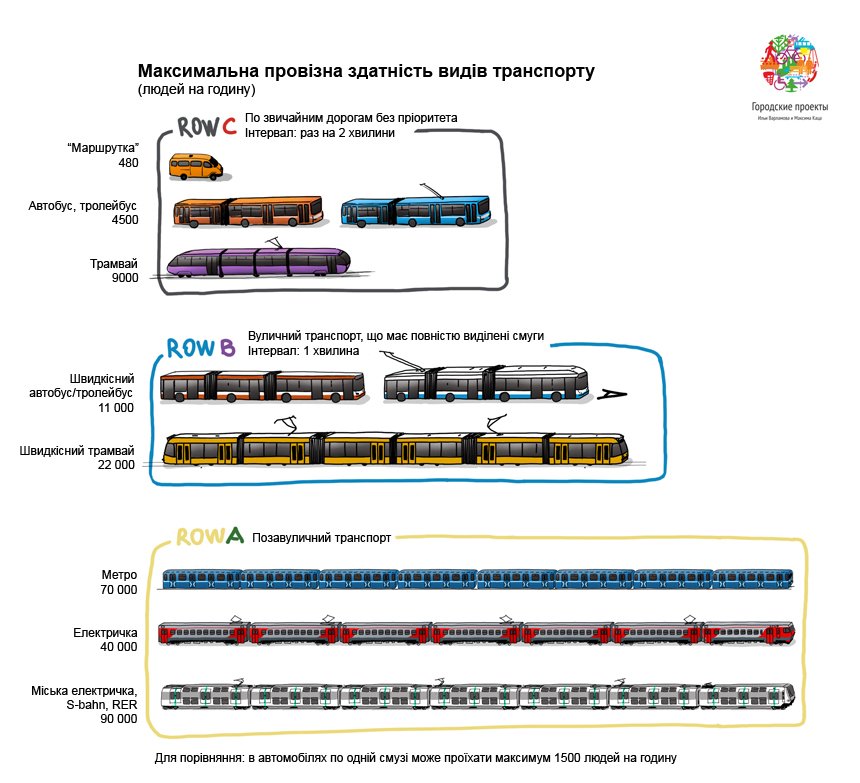 | Гнучкість руху | Обмежена коліями | Висока, за рахунок маневреності |