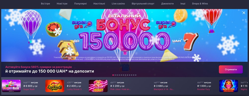 Зацікавлені грати? Досить ввести в пошуковому рядку запит: “Супер Гра казино Україна” і перейти на офіційний сайт. Процедура реєстрації не становить труднощів, але відкриває двері до безмежного світу можливостей та перемог.