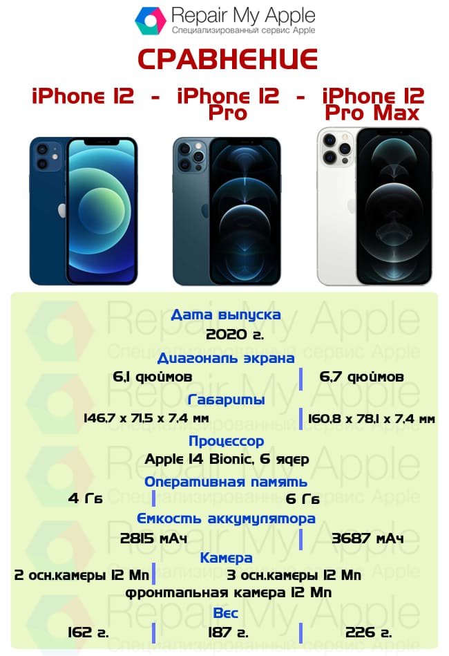 - Зберігання: Айфон 12 стартує від 64ГБ, тоді як Pro версія — від 128ГБ.