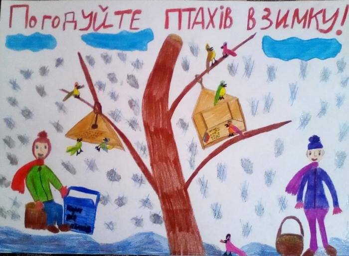 Про допомогу птахам взимку малюнки розповідають краще за слова. Це дієвий метод залучити дітей та дорослих до екології, адже візуальна інформація завжди потужніша.