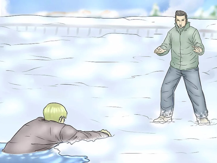 - Тримайтеся на поверхні. Використовуйте свої руки, щоб утриматися на краю льоду.