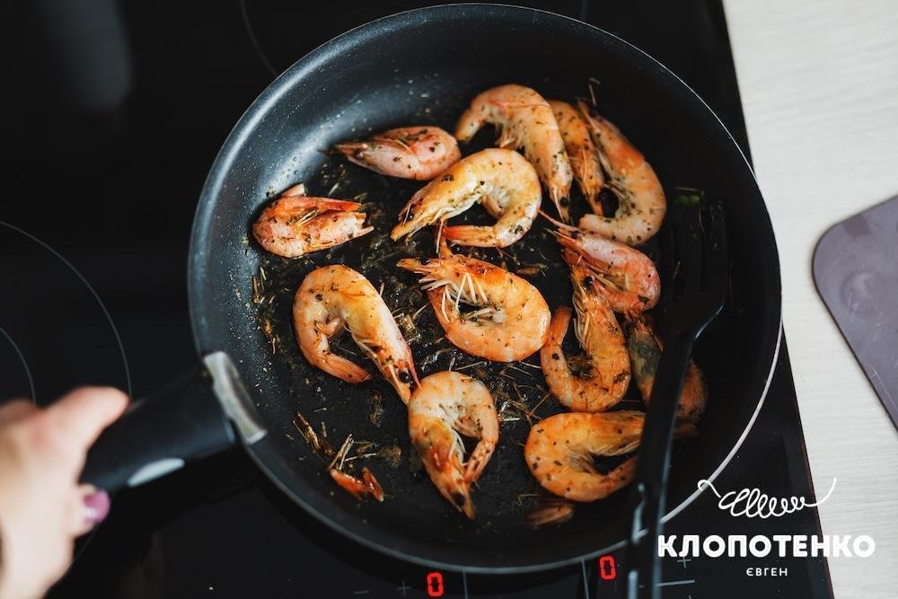Тепер про техніку, згадану мною вище. Готові креветки не стерплять недбалість. Хвилина зайвої термічної обробки — й смак як гумка під столом.