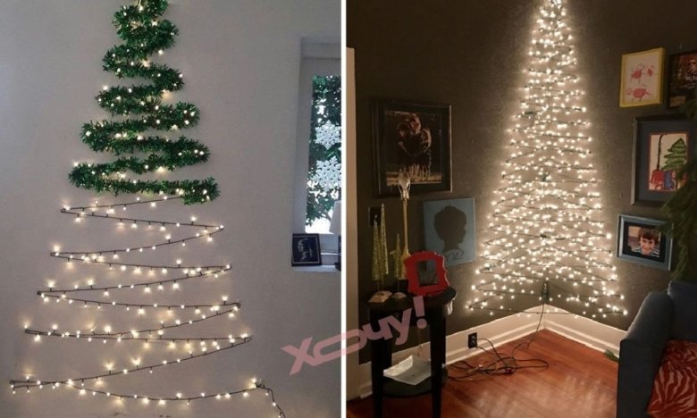 - Закріпіть гачки: Встановіть гачки на стіні на висоті приблизно 2/3 від підлоги, з обох сторін ялинки, або на рівні її центру ваги.