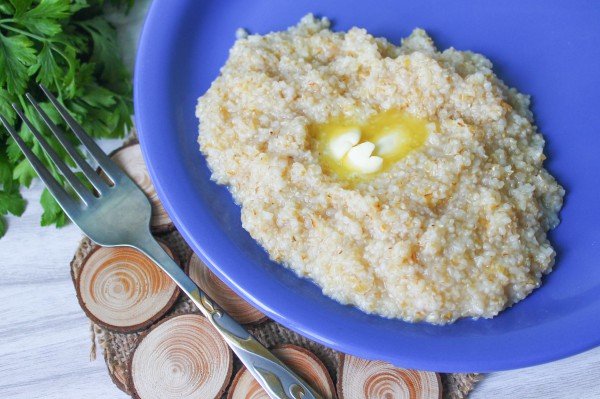 - Через 15 хвилин, коли вода поглинеться, а каша стане ніжно-пухкою, додайте масло. Потримайте ще хвилинку на вогні, закрийте кришкою і залиште настоюватися.