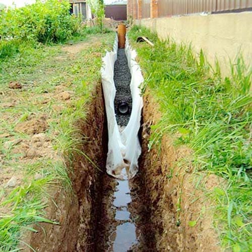- Копайте канаву: глибина і ширина залежить від типу труби і об’єму води.
