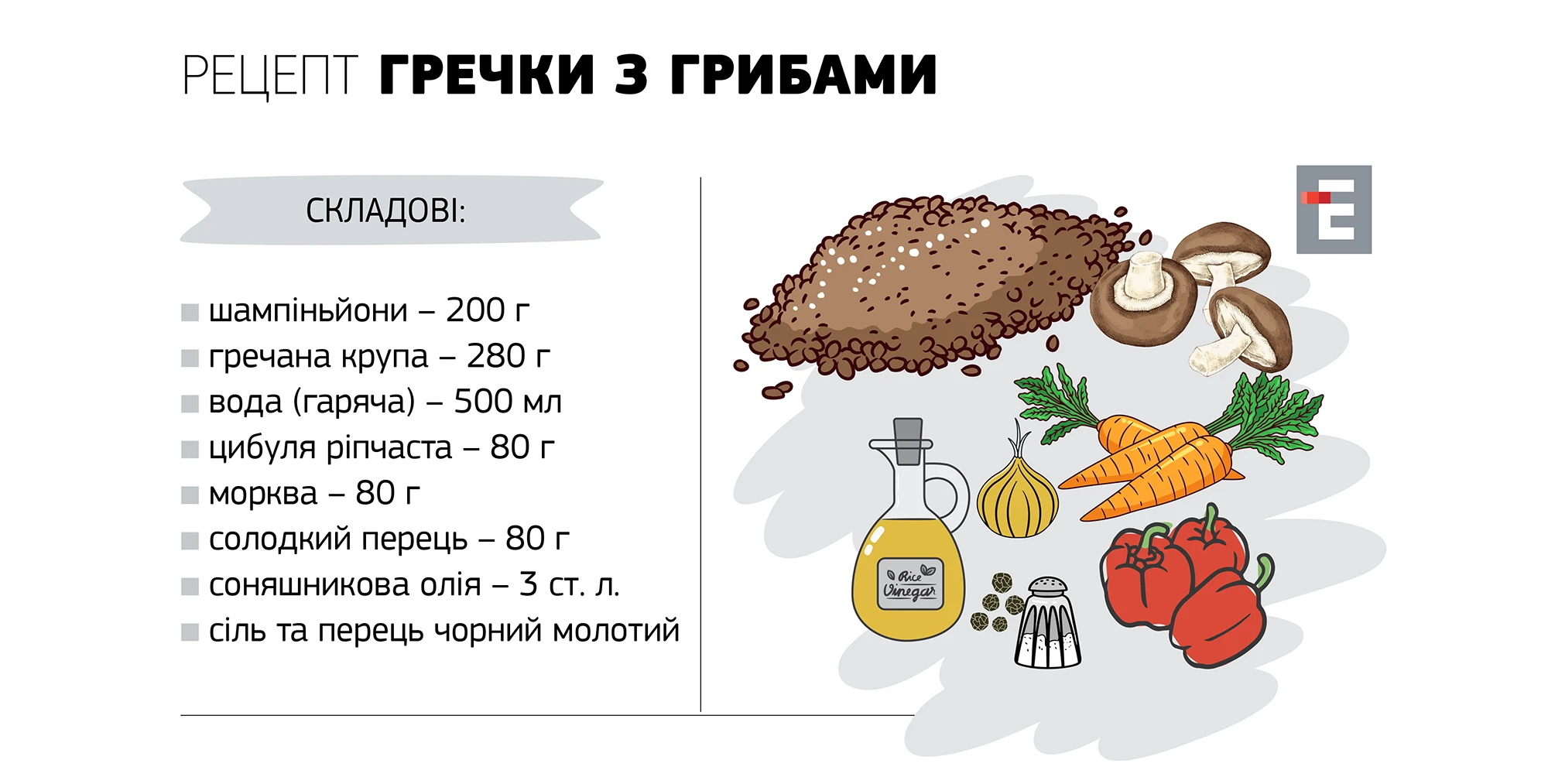 Таблиця співвідношення води та гречки