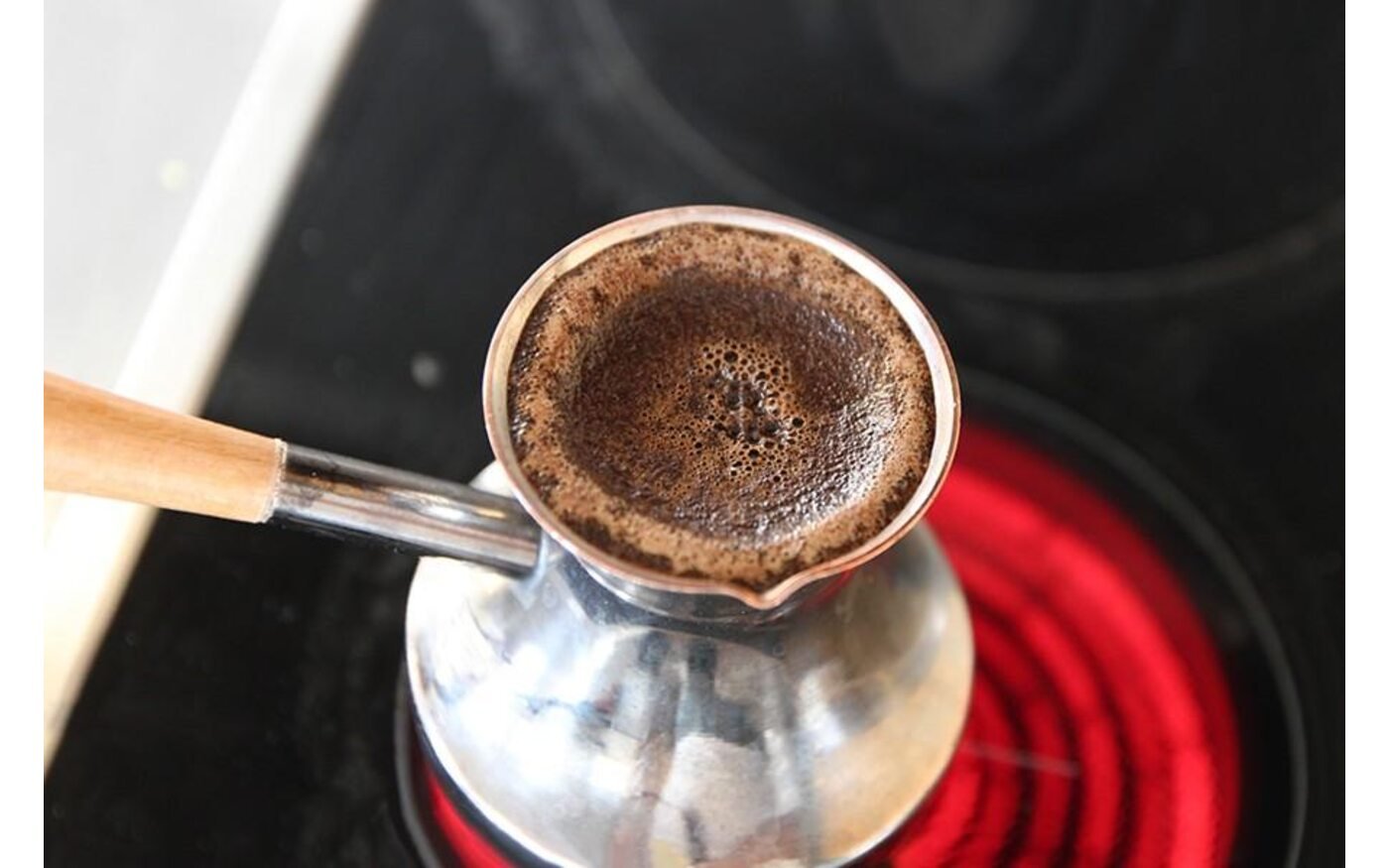 - Самий головний момент: Як тільки кава почне підніматися й от-от переллється через край — це ваше діло комусь розповісти… Чесно, знімайте турку з вогню. Дайте їй постояти секунд 30.