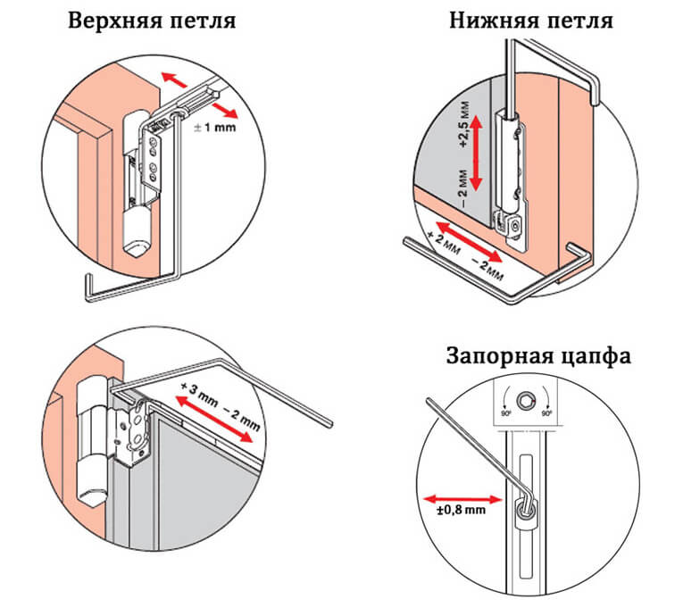 - Спершу відкрийте вікно і знайдіть регулювальні циліндри на нижніх петлях — це ключові точки.