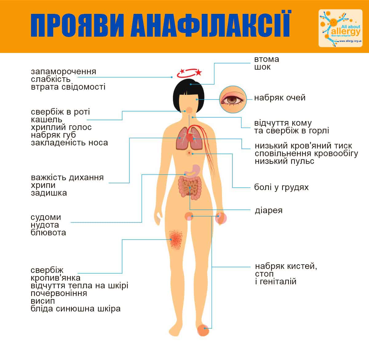 - Ліки: від легких висипань до анафілактичного шоку.