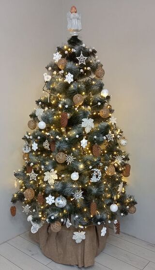Смарагд завжди асоціювався із багатством та поєднанням природи з розкішшю. Цей відтінок додасть ялинці глибини та загадковості. Використовуйте його, якщо ви хочете створити щось особливе, натхненне природою. У комбінації зі срібними або золотими акцентами, він виглядає просто казково.