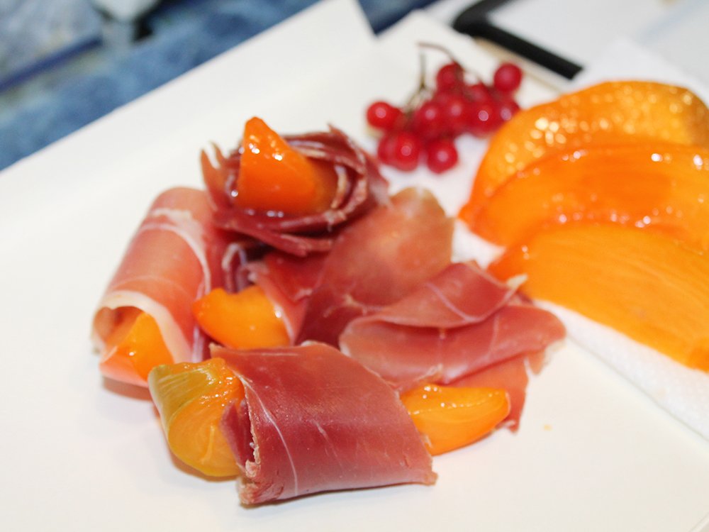 - Фрукти: Диня – традиційний компаньйон для хамону. Але не чурайтеся експериментів з інжиром, грушею чи навіть яблуком.