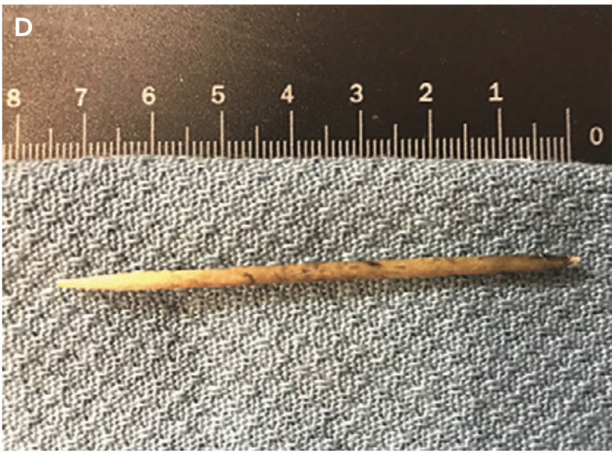 - Прохід через травний тракт: Зубочистка може пошкодити стінки шлунка або кишківника, викликаючи внутрішню кровотечу або перфорацію.